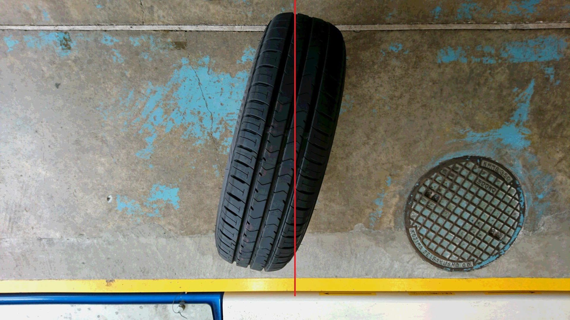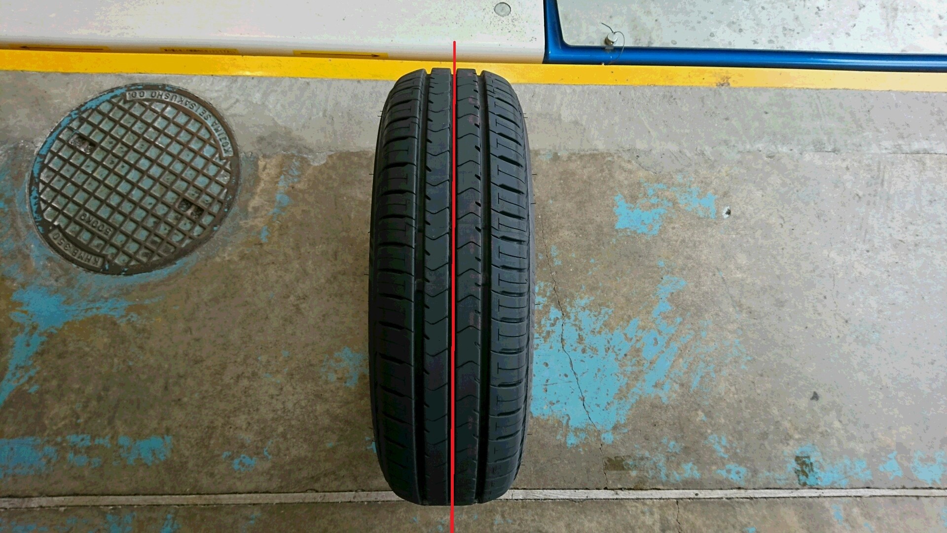 赤線を引いてありますが、この状態がタイヤのニュートラル状態です。