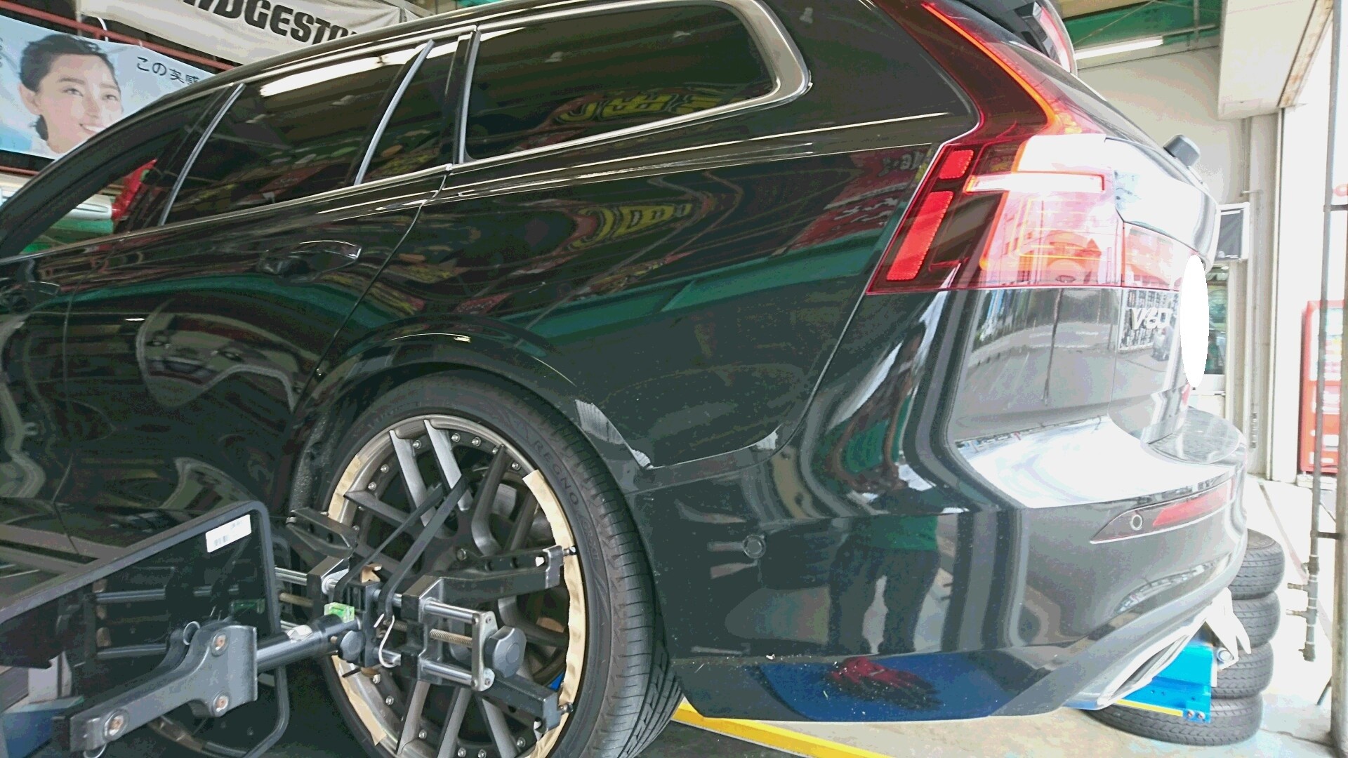 ボルボV60のアライメント調整です。このお車は、今では珍しいいですが