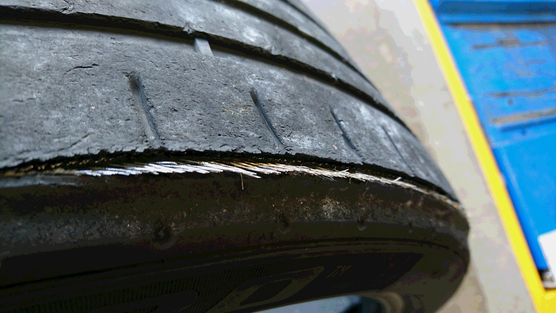 タイヤの基礎が・・・。 ポスト 2020年9月24日 こんにちは。タイヤ館福井インターの幸光です。 組み替えでお持ち込みのお客様のタイヤを見ましたら、何ということでしょう。 ワイヤーが、がっつり見えておりました。ショルダーを見ると内側が減っていましたので おそらくですが、空気圧不足でフロントタイヤだったので、アライメントがずれている 可能性もあります。ここまで使う人はまぁいないと思いますが、こうなっては、要交換となります。 担当:幸光 優