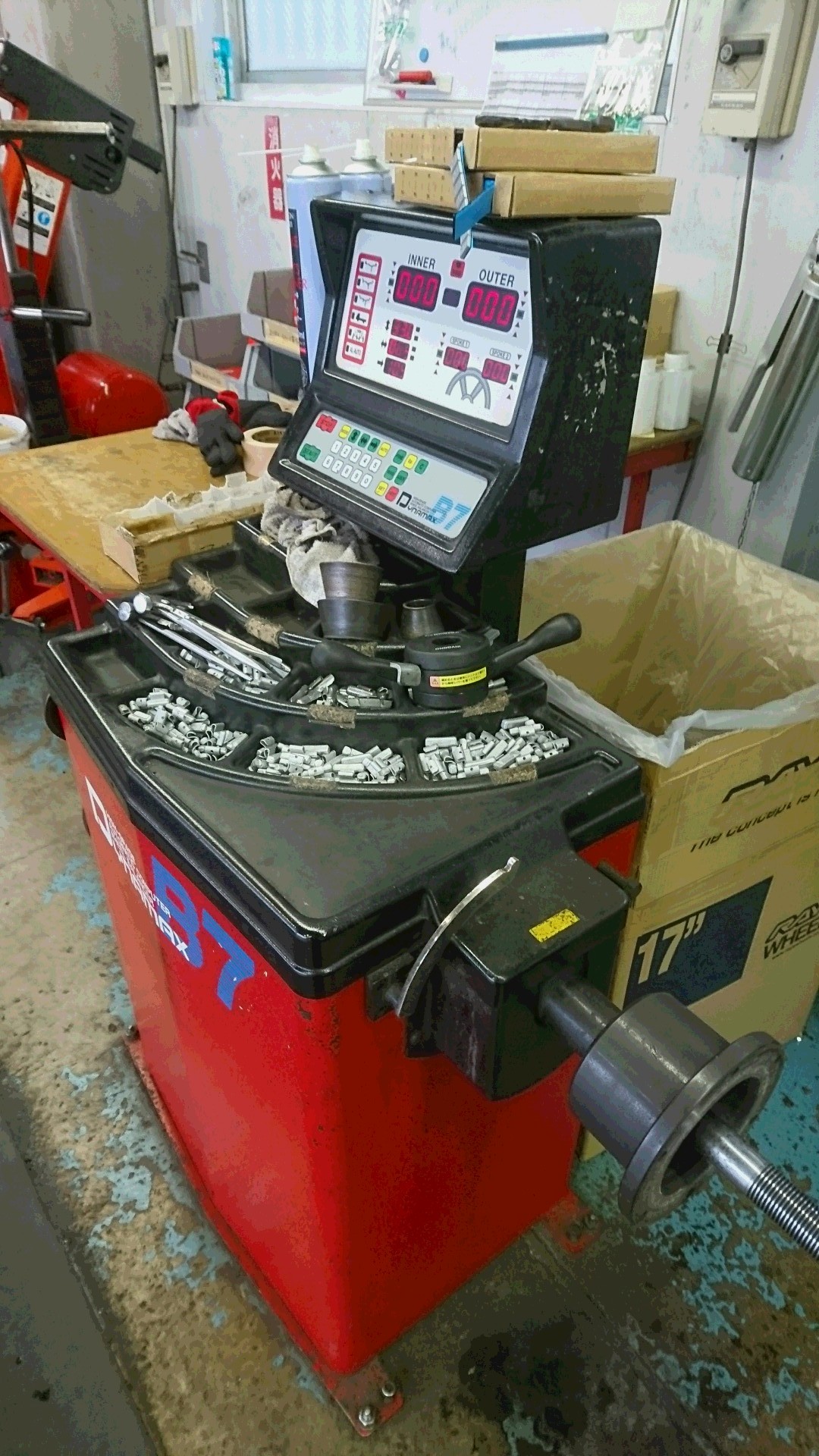 タイヤで一番重要なバランスをとる機械、ホイールバランサー。少々不具合もありましたが、今年も