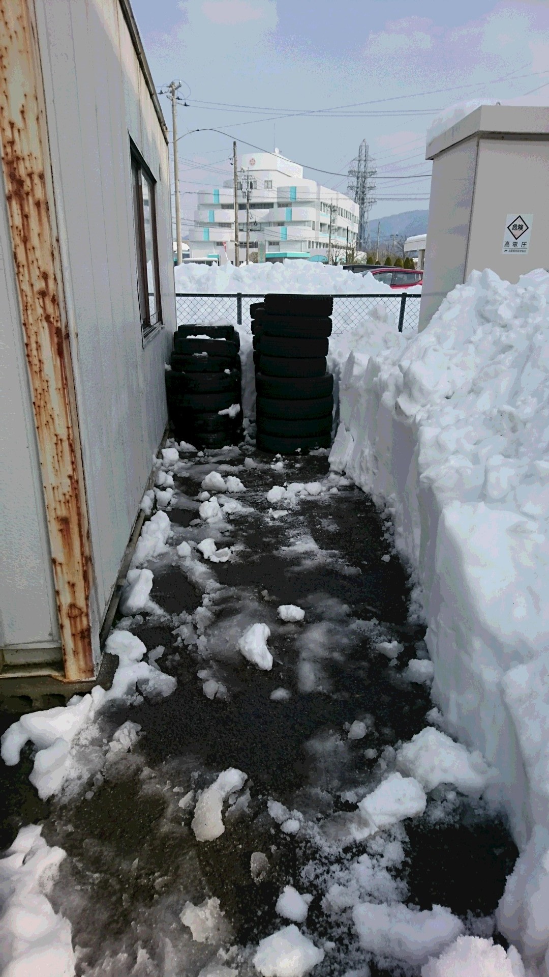 廃タイヤ置き場。 ポスト 2021年1月14日 こんにちは。タイヤ館福井インターの幸光です。 今日は、少し気温が高いので雪も初めのころに比べると、だいぶ解けました。 廃タイヤ置き場が、積雪で使えなかったので除雪をしました。 ここは、除雪の機械が入れないので、人力でスコップで除雪してタイヤが置けるスペースは確保しました。 ここしばらくは、気温が高い日が続くみたいなので、雪も解けてくれると思います。 担当:幸光 優