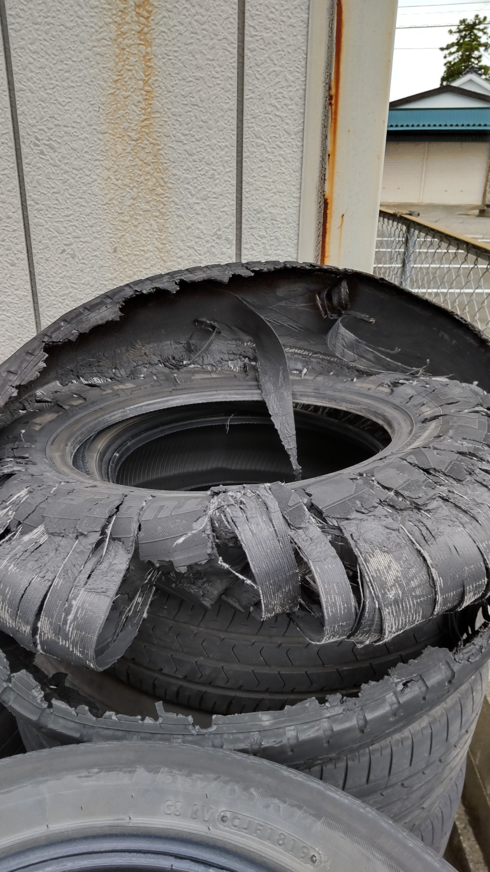 タイヤの原型が・・・。 ポスト 2022年9月19日 こんにちは。タイヤ館福井インターの幸光です。 ハイエースのお客様。タイヤが見ての通り、原型がありません。 タイヤが完全に剥がれています。これは危険です。 完全に剥離しております。 原因は、タイヤがこの状態だったので分かりませんが、 おそらく、何か異物を拾ってそれがタイヤに刺さりエア漏れを引き起こし、パンクに至ったということになったと思います。 担当:幸光 優