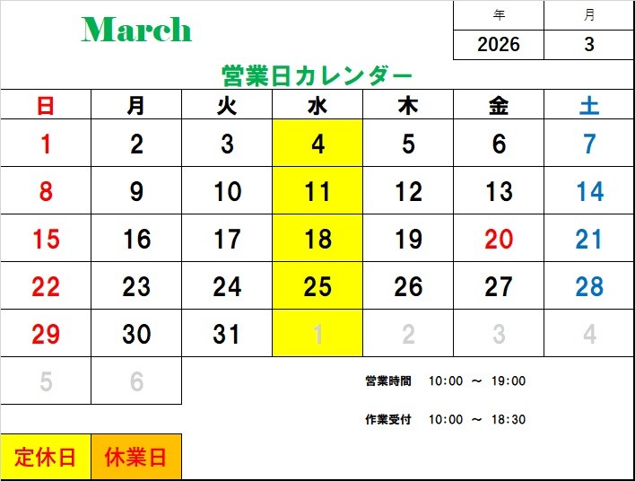 3月カレンダー