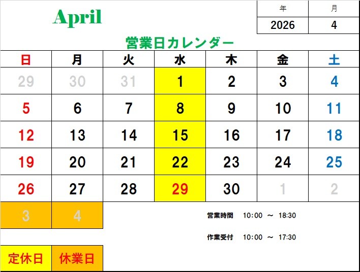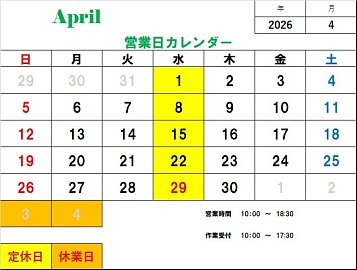 4月のカレンダーになります!