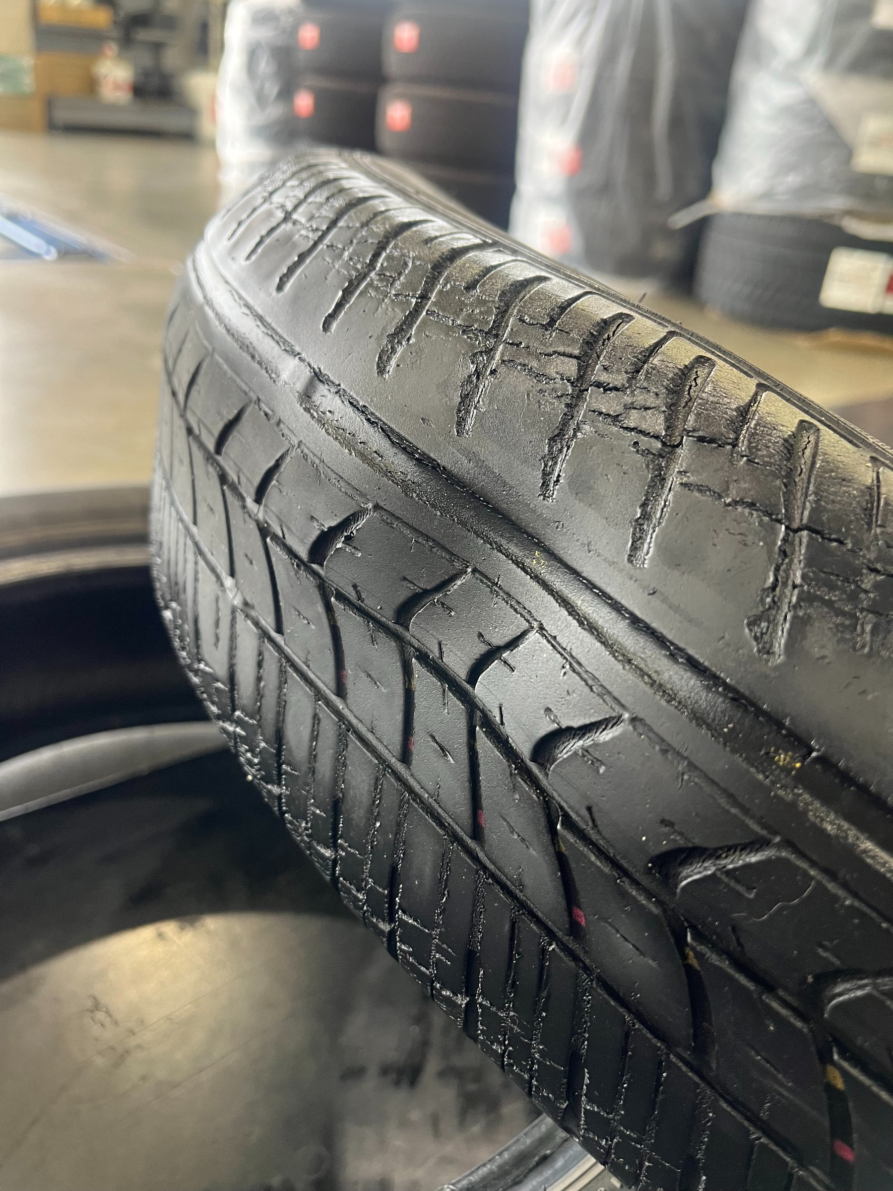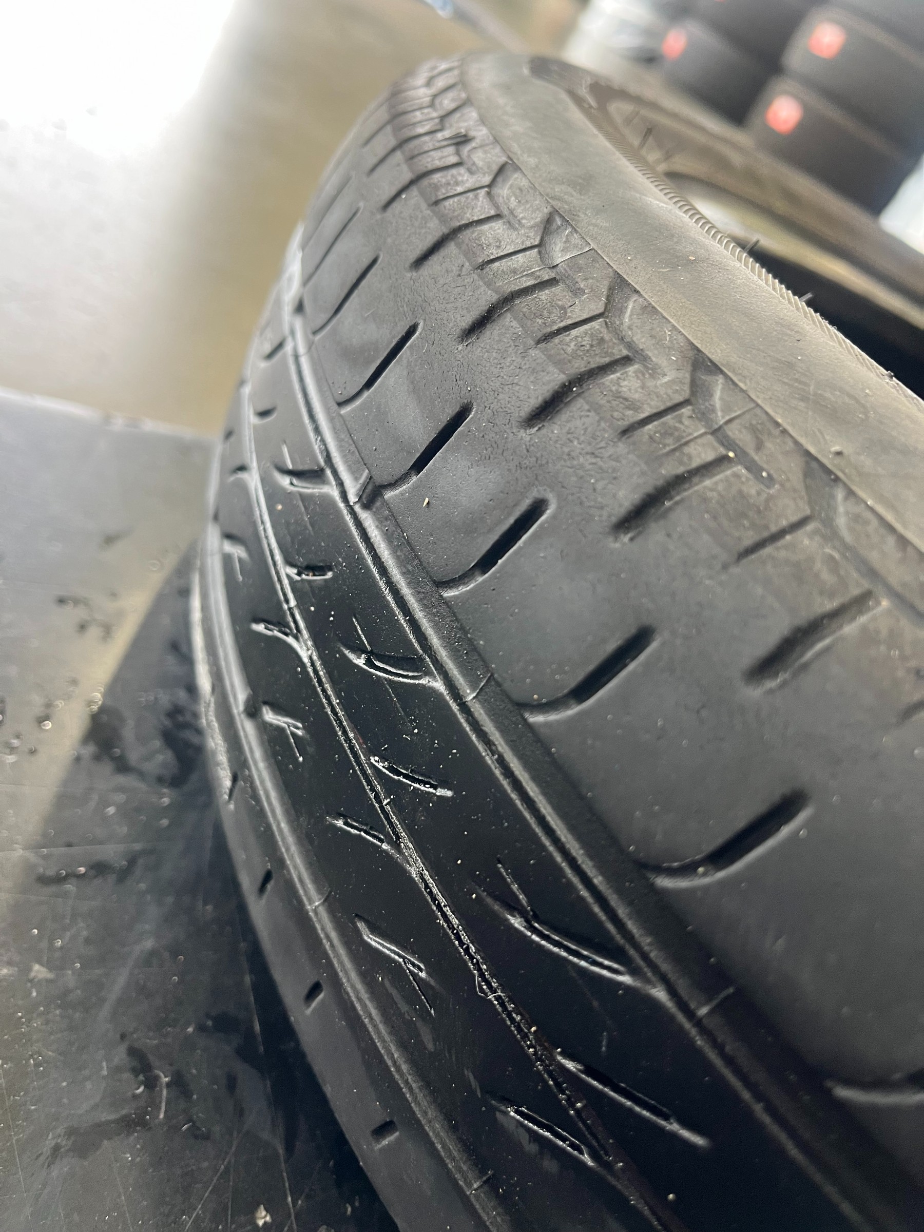 これは、かなり古いタイヤで、横にひび割れもあったりして、元から状態のよくないタイヤで、カーカスが損傷していたのでしょう。
