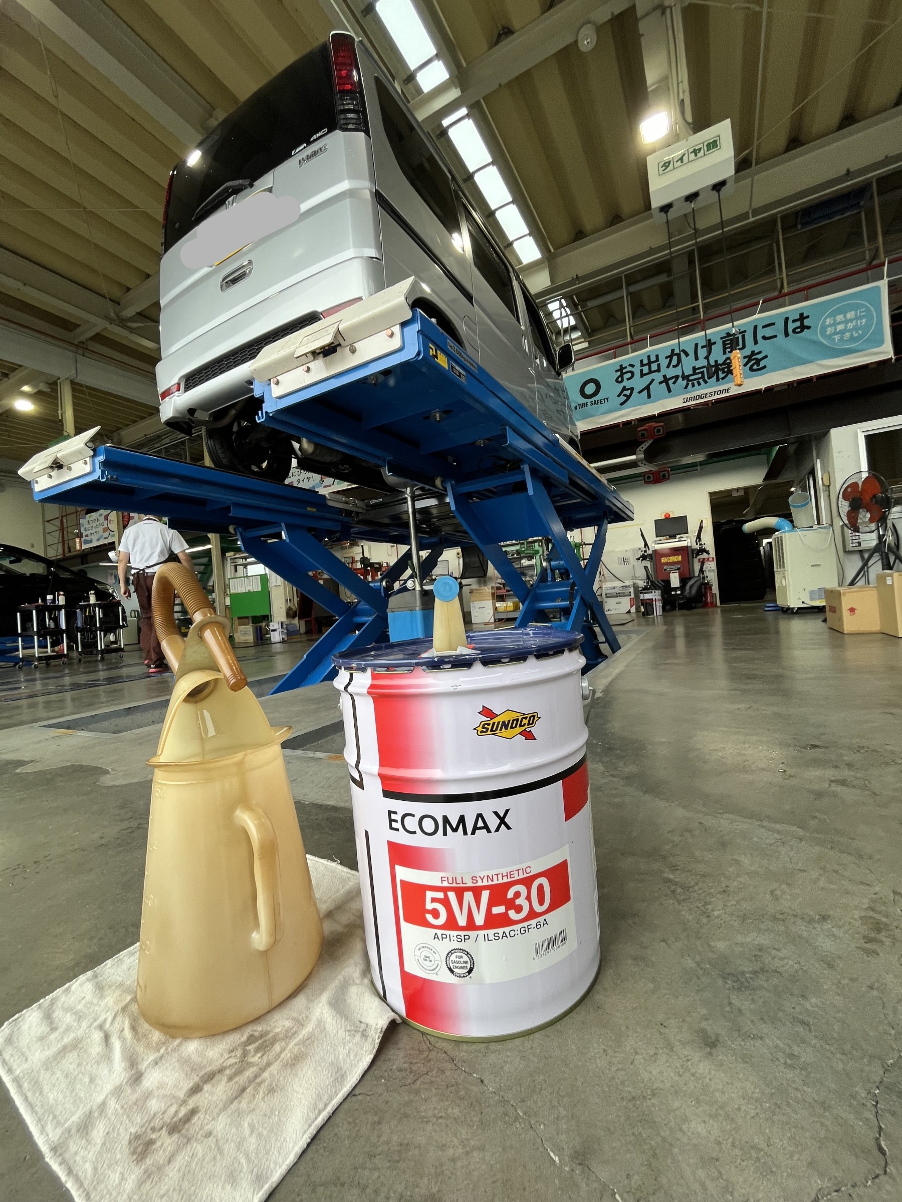当店はタイヤ交換だけでなく、おクルマのメンテナンスも得意です。もちろんエンジンオイル交換もお任せください。