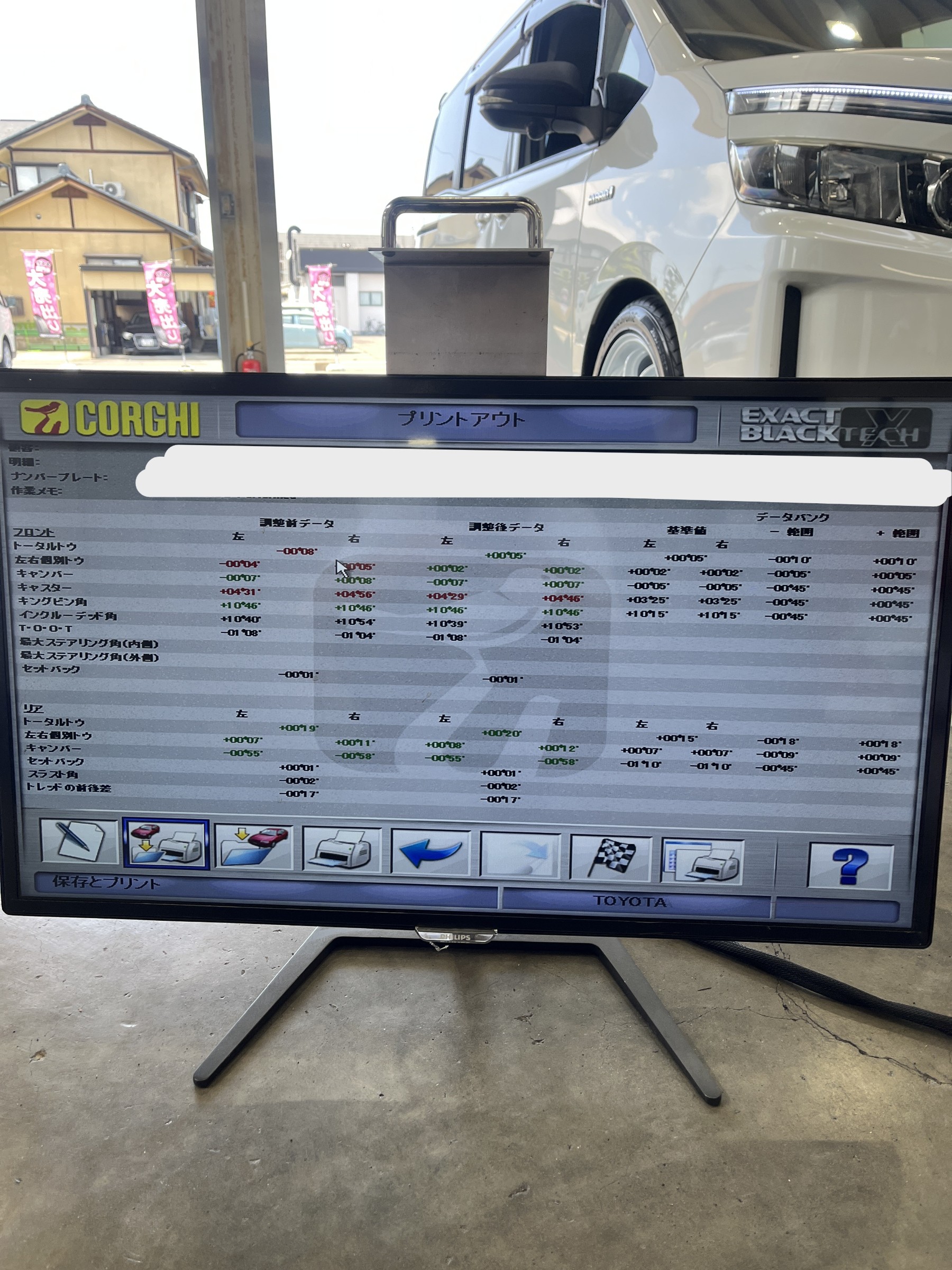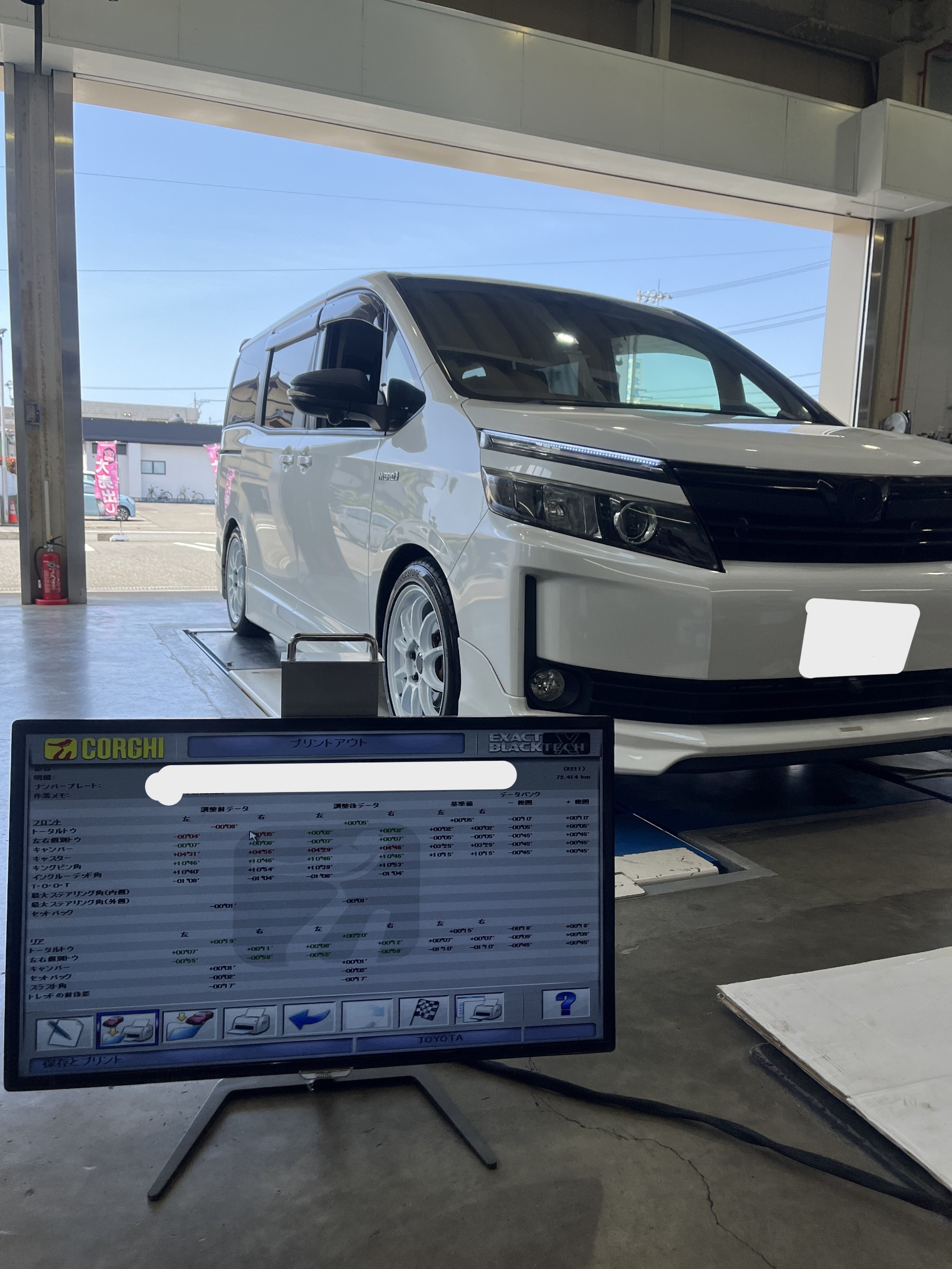 折角新しいホイールとタイヤを買いましたので、アライメントも見てほしいということで