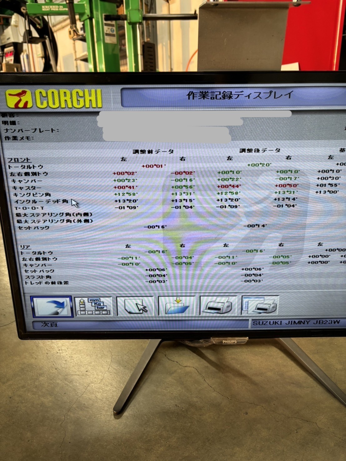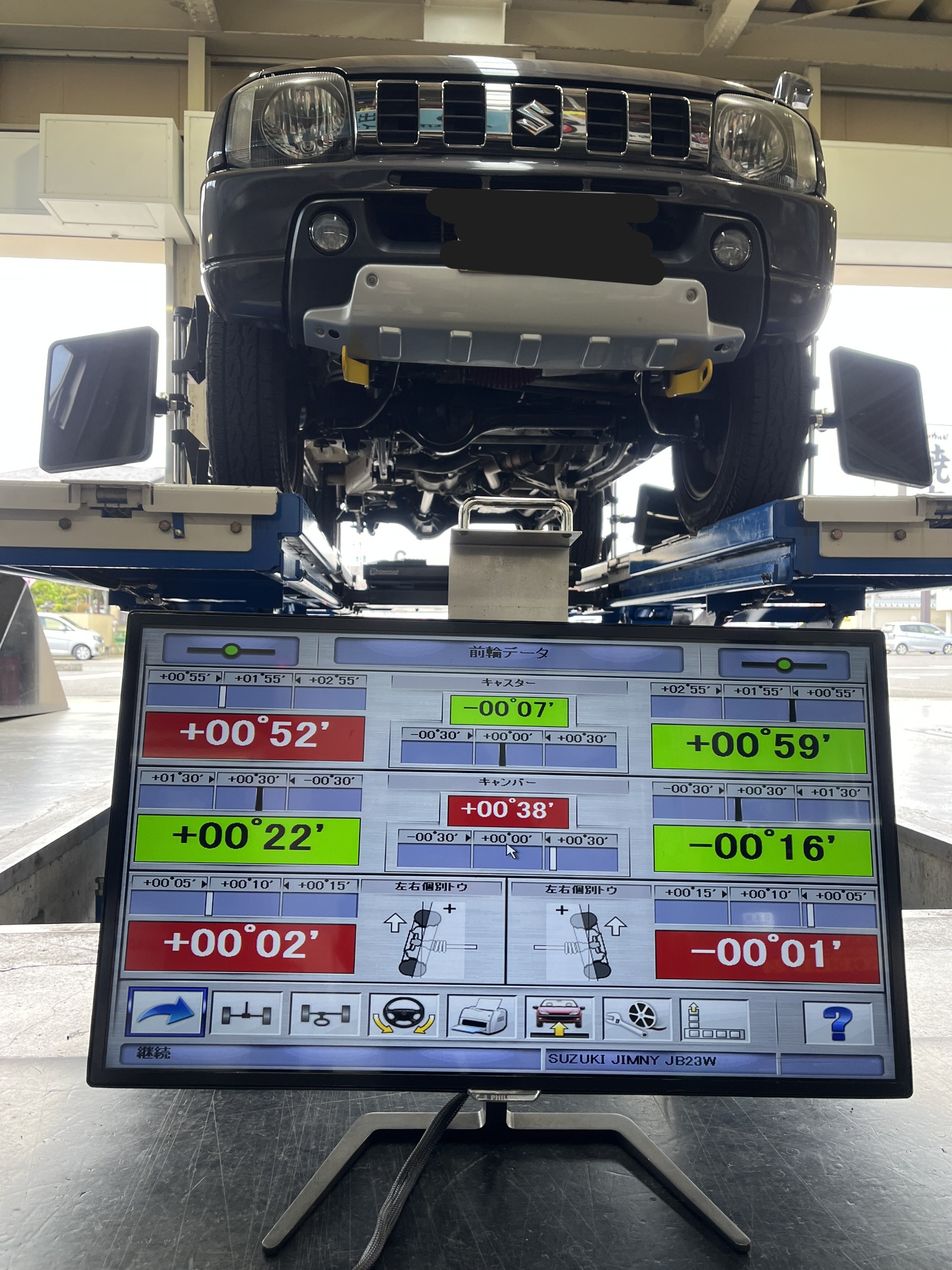 バネを交換するので、アライメント測定・調整もさせてもらいました(*´ω`)
