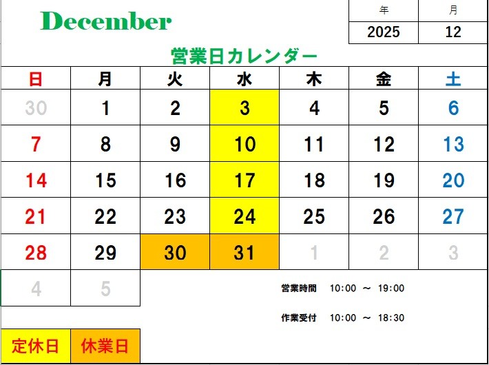 12月カレンダー ポスト 2025年11月4日 一年なんて、こんなに早く過ぎ去っていくものなんですね・・・。 気づけば、12月のカレンダーをこうしてアップする。 もうそんな時期なのかと、焦燥感にかられそうです。 カテゴリ:お知らせ その他 担当:スズキ