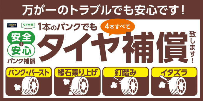タイヤ4本ご購入頂いたお客様が対象の補償になります!