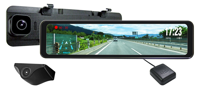 ルームミラー型の大型液晶で前後カメラの映像をモニターできる、待望のドライブレコーダー[ NX-DR-M22 ]が登場です。