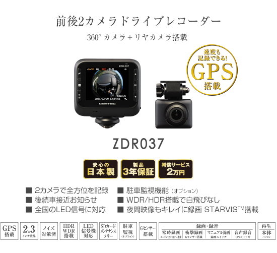 コムテック ドライブレコーダー ZDR037 ポスト 360°フロントカメラで全方位を記録。さらにリヤカメラで後方をしっかり記録。 2カメラ ドラレコ 関連情報もあわせてご覧ください ZDR037 カテゴリ:商品情報 その他商品・サービス