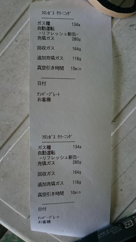 作業後は、ちゃんと紙にプリントされて、元々のガスの量と補充したガスの量等の情報も見れます♪( v^-゜)♪