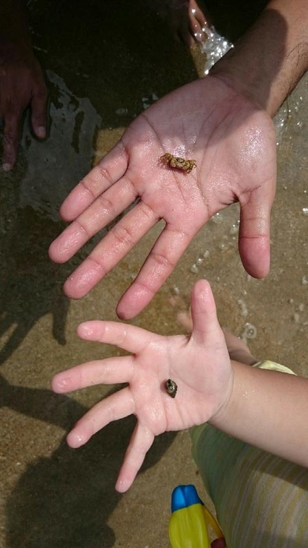 その後も水鉄砲で遊んだり「ヤドカリ」集めたり砂浜の穴を掘り返してカニを捕まえたりと楽しい時間を家族で過ごしました♪♪( ̄∇ ̄*)ゞ