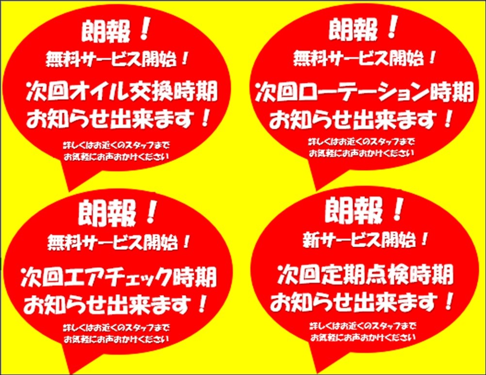 オイル交換・エアーチェック・ローテーション時期、無料お知らせ通知サービスやってます