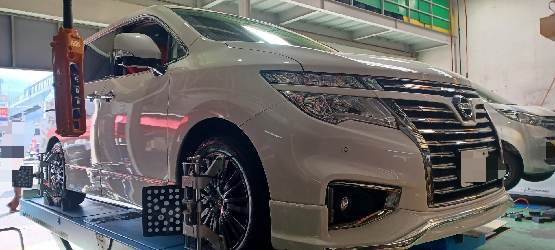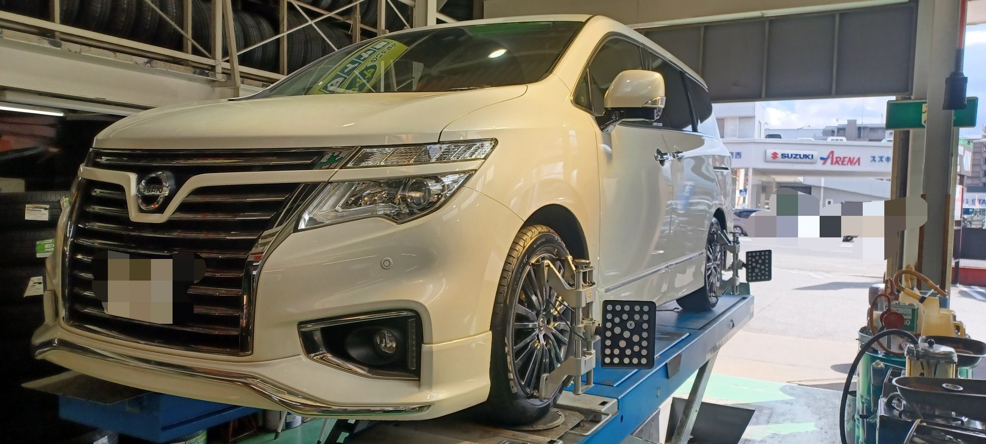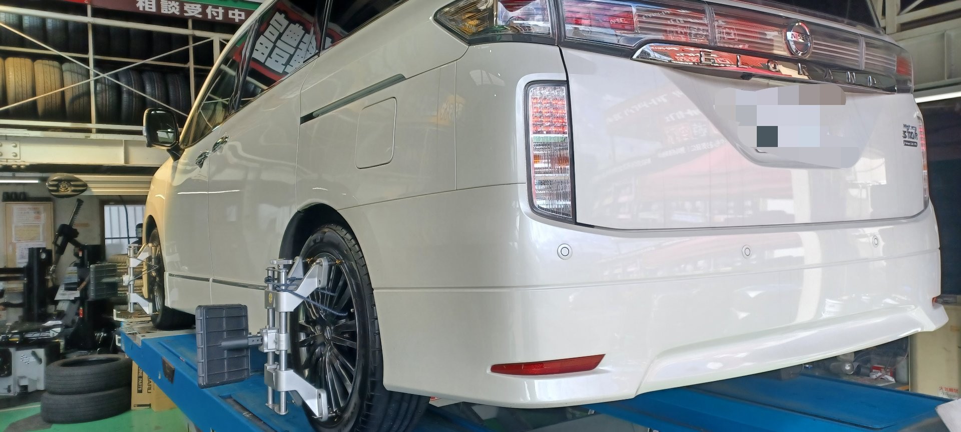 タイヤ交換&アライメント調整。走行距離50000キロ、NISSAN、エルグランド