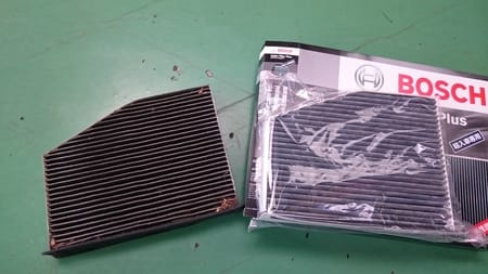 先日、ゴルフ5 GTXのエアコンフィルターを BOSCHの抗菌脱臭タイプのフィルターに交換しました!