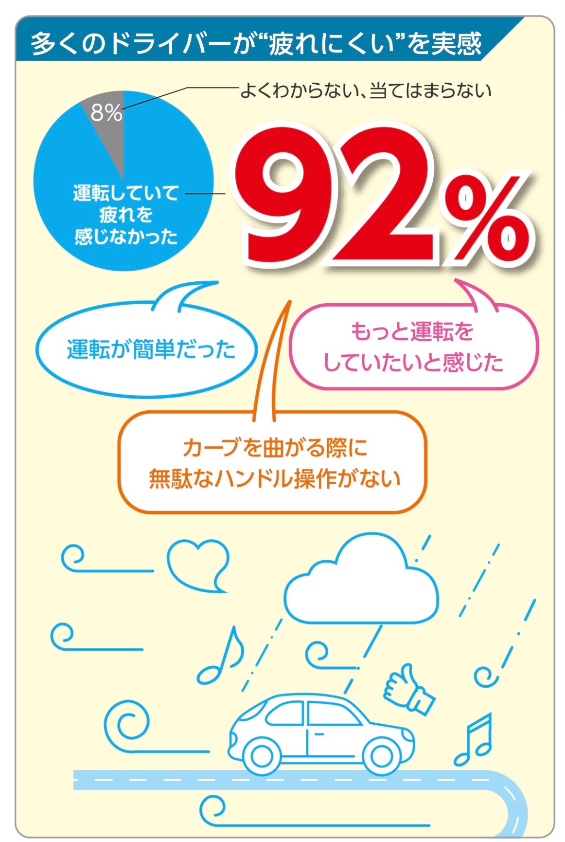 それぞれがもたらす雨の日の安心感と高速・長距離での疲れにくさは