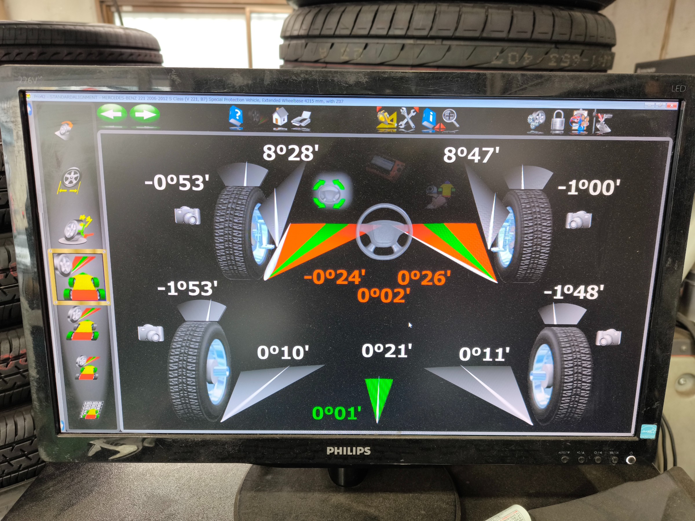 きれいにタイヤが左右共に左に向いている状態です。