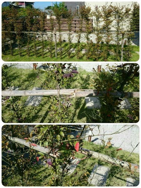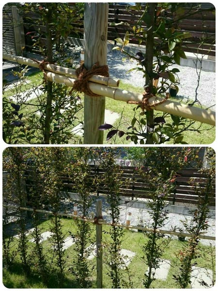 先月の台風で門柱から玄関までのアプローチと庭の境目に、植えてる木を支える竹が強風で「ポッキリ」 折れてたので修復しました!( v^-゜)♪