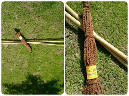 5㍍の長さの丁度良い竹が無くて3㍍の竹を2本と竹を縛るシェロ縄を買いました。f(^_^;