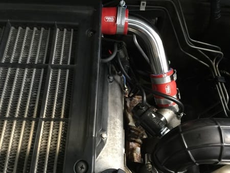 若干亀裂が見え隠れするタービンからインタークーラまでのパイプ。