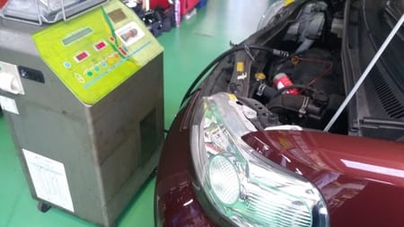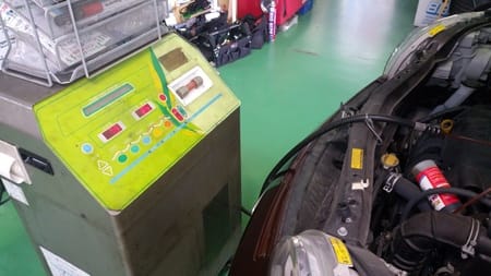 でも~エンジンオイルみたいに手軽に確認ができないので、専用の機器でチェックします!