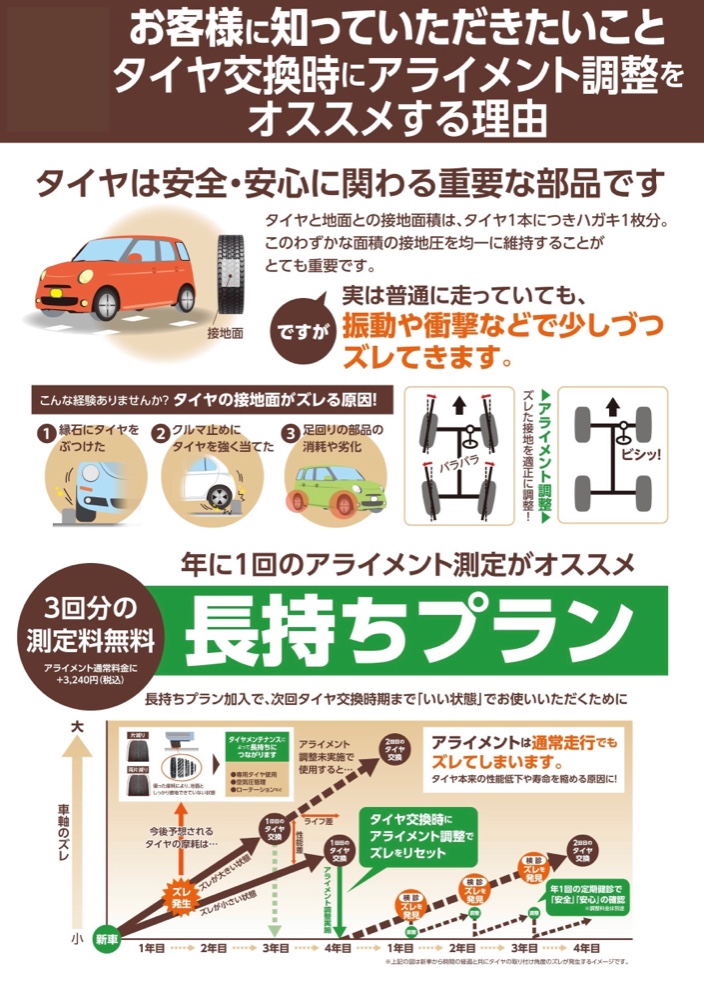 なので、タイヤ館ではお客様にタイヤを長く使ってほしいので
