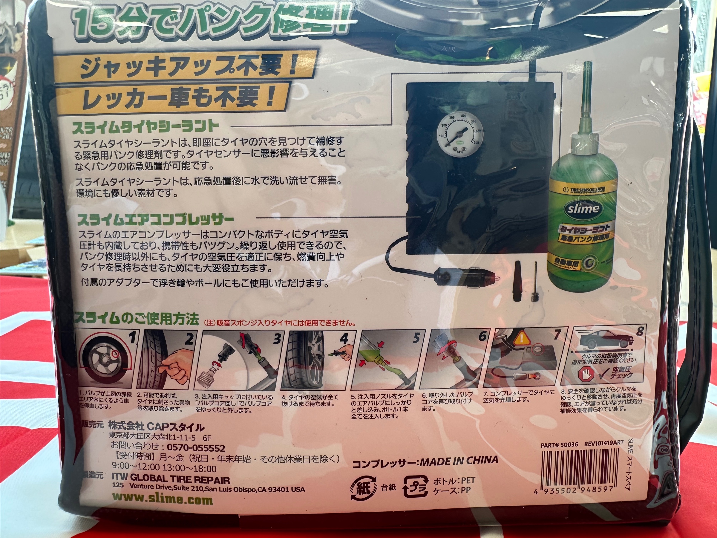 シガーソケット に差し込みエアーとスライムをタイヤに注入するだけのお手軽な商品になります!