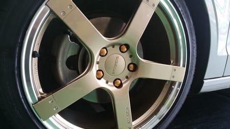 シンプルなホイールデザインだから、せめてボルトカラーで演出することも