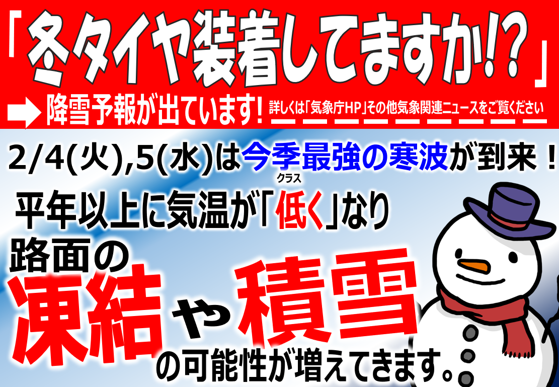 2月4日~6日は雪予報です。当店スタッドレスタイヤ在庫情報です♪♪