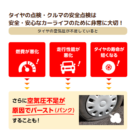 タイヤの点検・お車の点検を定期的にされてますか?