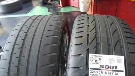 POTENZA S001に交換して専門店作業のアライメント調整も施工しました!( v^-゜)♪
