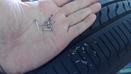 1本のタイヤに3本ぐらい釘が刺さってるのは