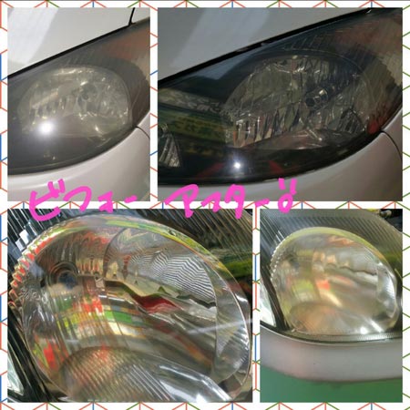 自慢のサービス”ヘッドライト磨き”も相変わらずの大好評!!