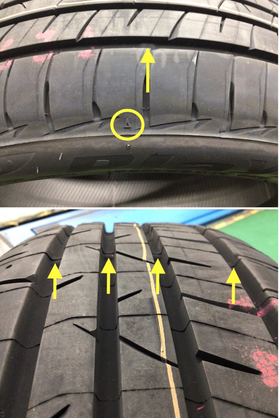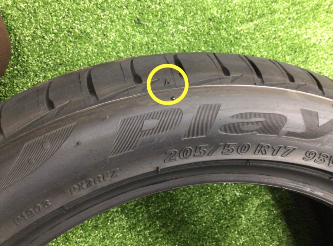タイヤのサイドに「▲」マークを辿っていくと、