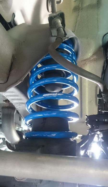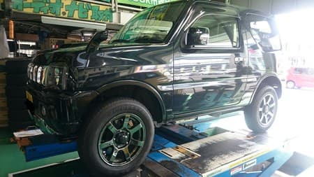 先日パジェロの お客様の紹介で彼女様のジムニーにモンスタータジマの車高が約20㎜アップサスを装着しました。
