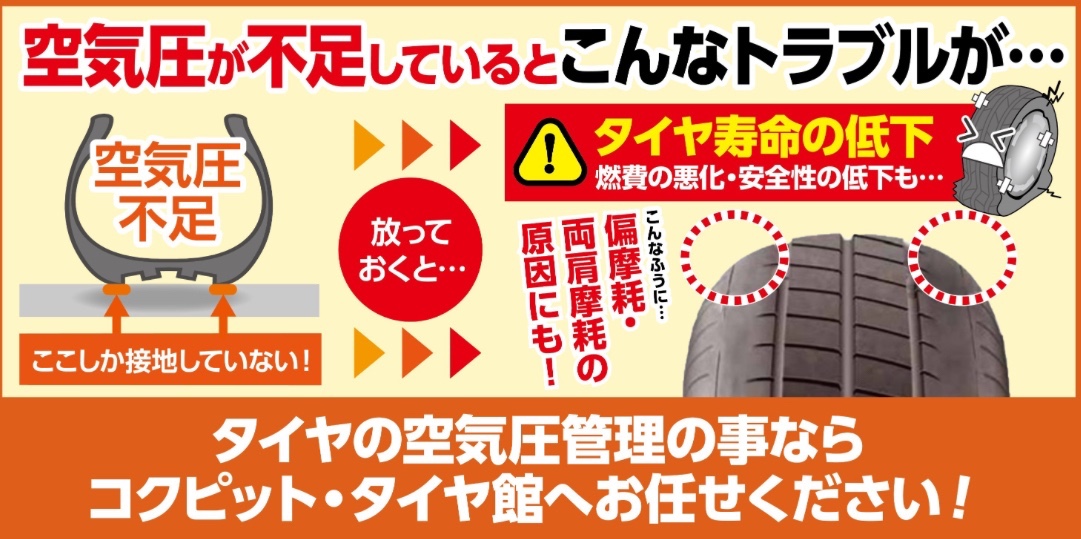 ※燃費や乗り心地が悪くなる ・走行性能の低下 ・タイヤの寿命低下