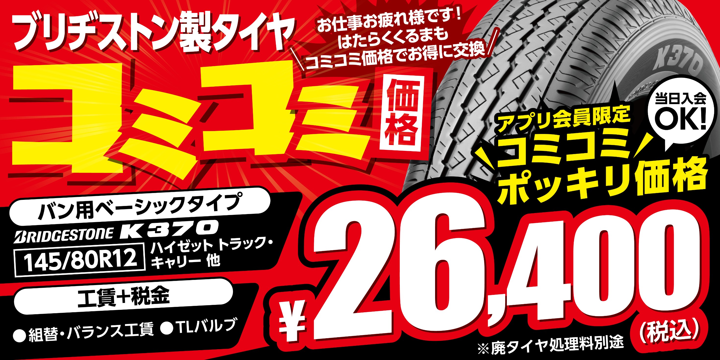 タイヤ館は「平日がお得!」軽トラ軽バンタイヤとエンジンオイル交換は平日がお得です♪
