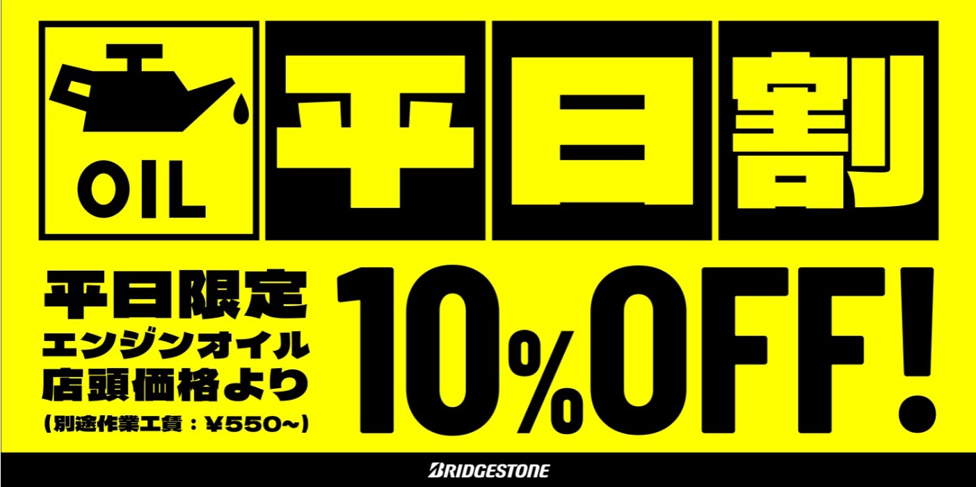 平日はなんとエンジンオイルもお買得ですよ♪