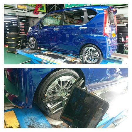 MOVE にアライメント調整&ホイール交換です。(^-^)/