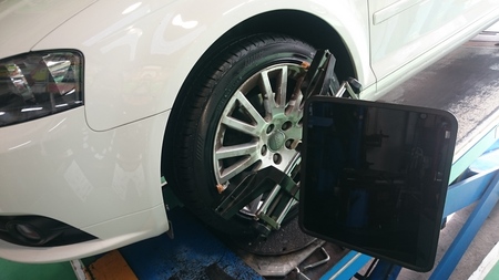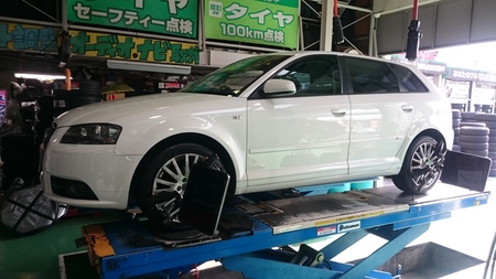 今日は、女性オーナー様のアウディ A3のタイヤ交換&アライメント調整です。