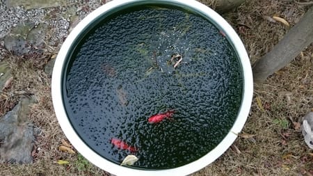 今日、仕事に行く前に庭の金魚に餌をやろうと金魚鉢に向かうと………