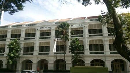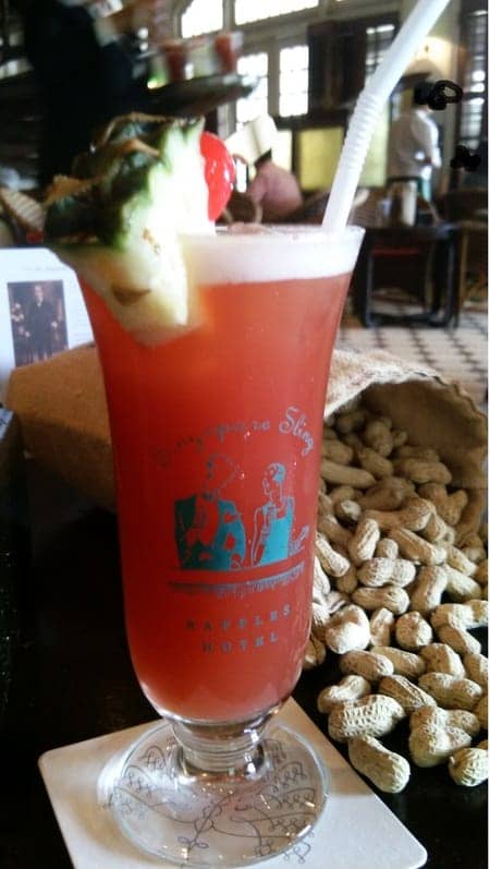 「ラッフルズホテルのロングバーで午前中からシンガポールスリングを飲む」
