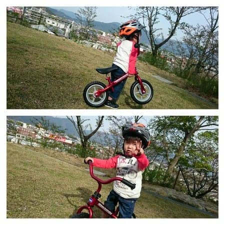 芝生が ひいてある広い広場に着くとヘルメットを被り楽しそう遊んでました( v^-゜)♪