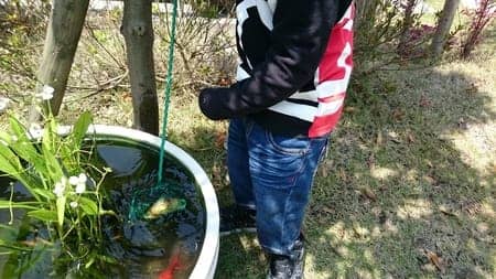 庭の金魚ちゃん達は約2週間位、エサも食べずに居たので安否確認してみると…