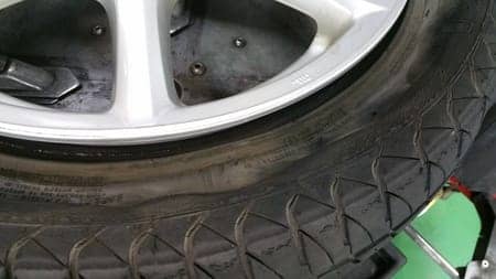 こちらのお客様も気づかぬうちに篇摩耗(偏った摩耗)とヒビワレから