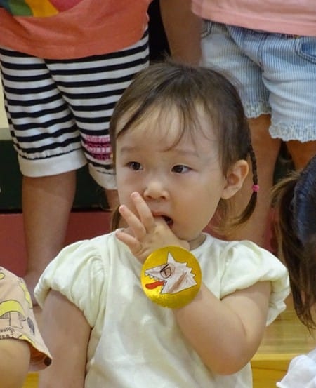 沢山の保護者が見ている中、一番前に立った娘は、恥ずかしさから、指がずっと口に入った