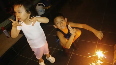 次の日は、庭で花火しました。