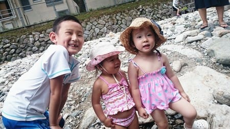子供達は、水遊びが終わると、次は魚探しが始まり、メダカやおたまじゃくし、カニを捕まえてました。